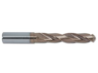 Твердосплавные удлиненные сверла по металлу с внутренним охлаждением, общего назначения. Угол заточки при вершине 135°.