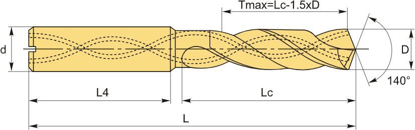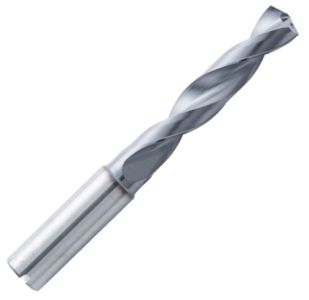 Высокопроизводительные твердосплавные сверла по металлу с внешним охлаждением. Глубина сверления 5xD. Угол заточки при вершине 140°. PVD покрытие AlTiN nano (напыление нитрида титана, легированное алюминием) придает инструменту превосходную износостойкость, термостойкость и продляет срок его службы.