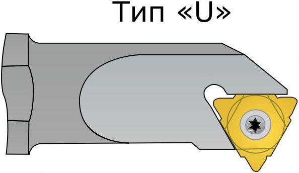 Резец резьбовой со сменными пластинами тип U стандарта 4 U NR/L ISO (длина грани 22 мм), с опорной пластиной, крепление типа S - винтом, для внутренней обработки N, левого исполнения L.
